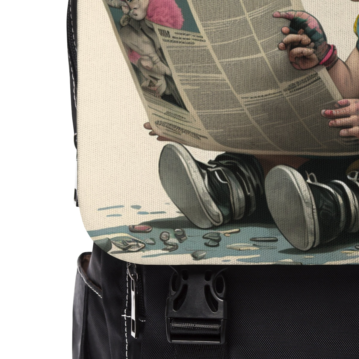 Casual backpack in a classic shape with a front flap design. It is made of durable Oxford canvas. It has two slip interior pockets and one laptop sleeve in the main compartment, a front zipper pocket, and two side pockets.